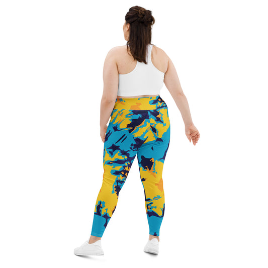 Blue & Yellow Print Plus Size Leggings