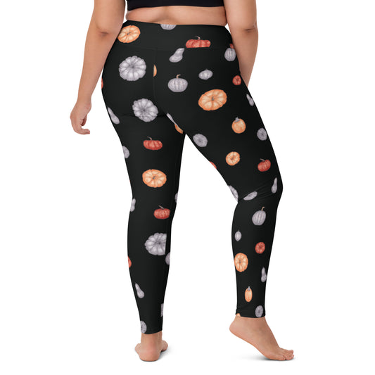 Multi-Color Pumpkins Print Yoga Leggings - Black