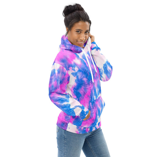 Pink & Blue Tie Dye Print Unisex Hoodie