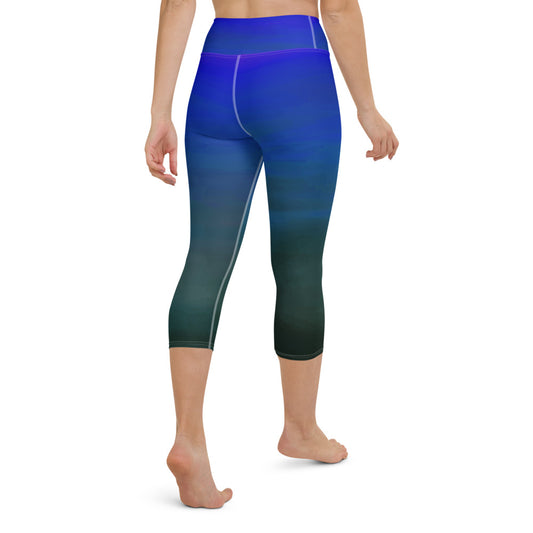 High Waist Blue Ombre Yoga Capri Leggings