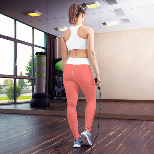 Coral and White Yoga Leggings